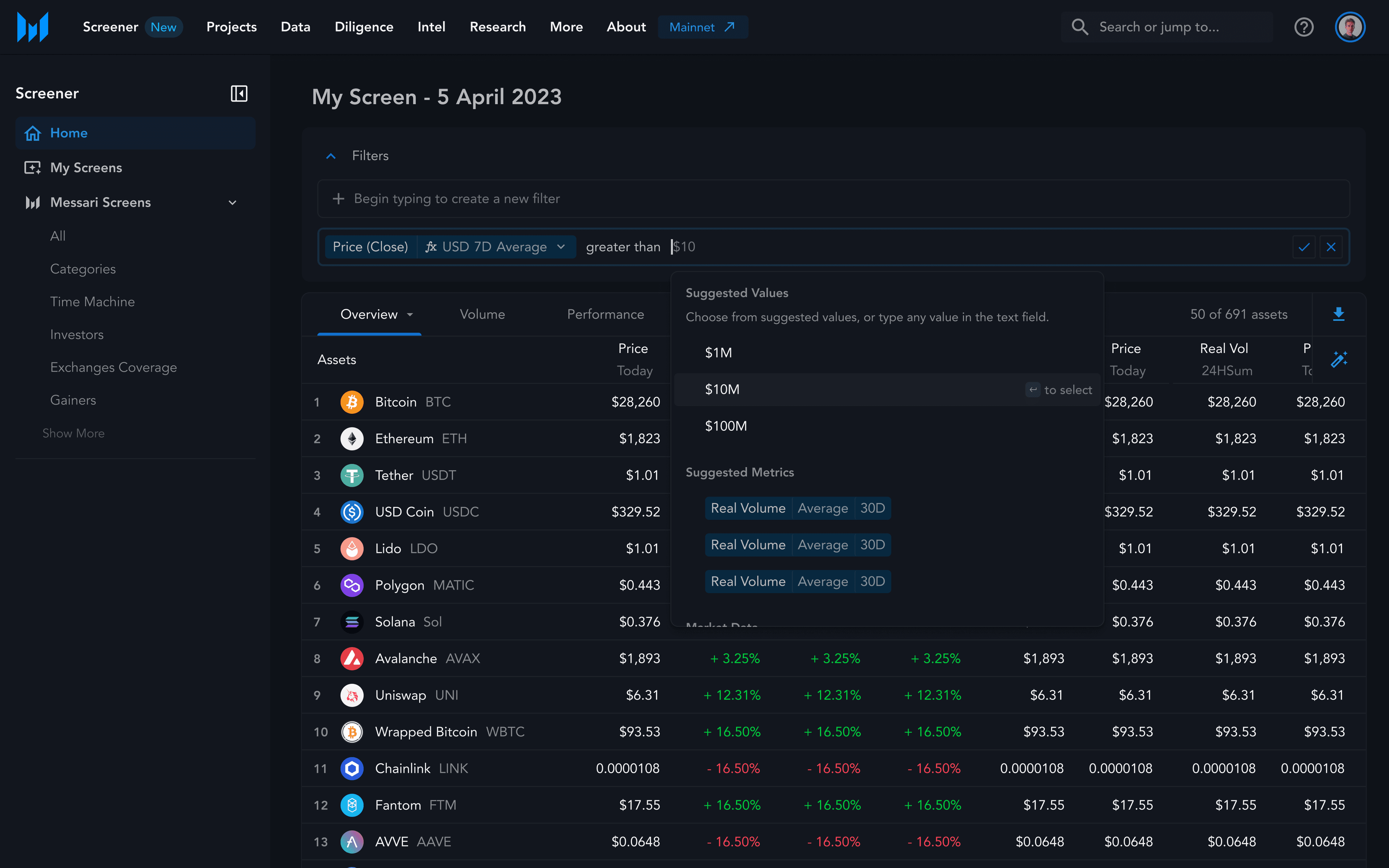 Today, nearly a year after release, Messari's new screener is driving our growth in Enterprise users, who are drawn to the tool's flexible filtering system on our novel datasets.